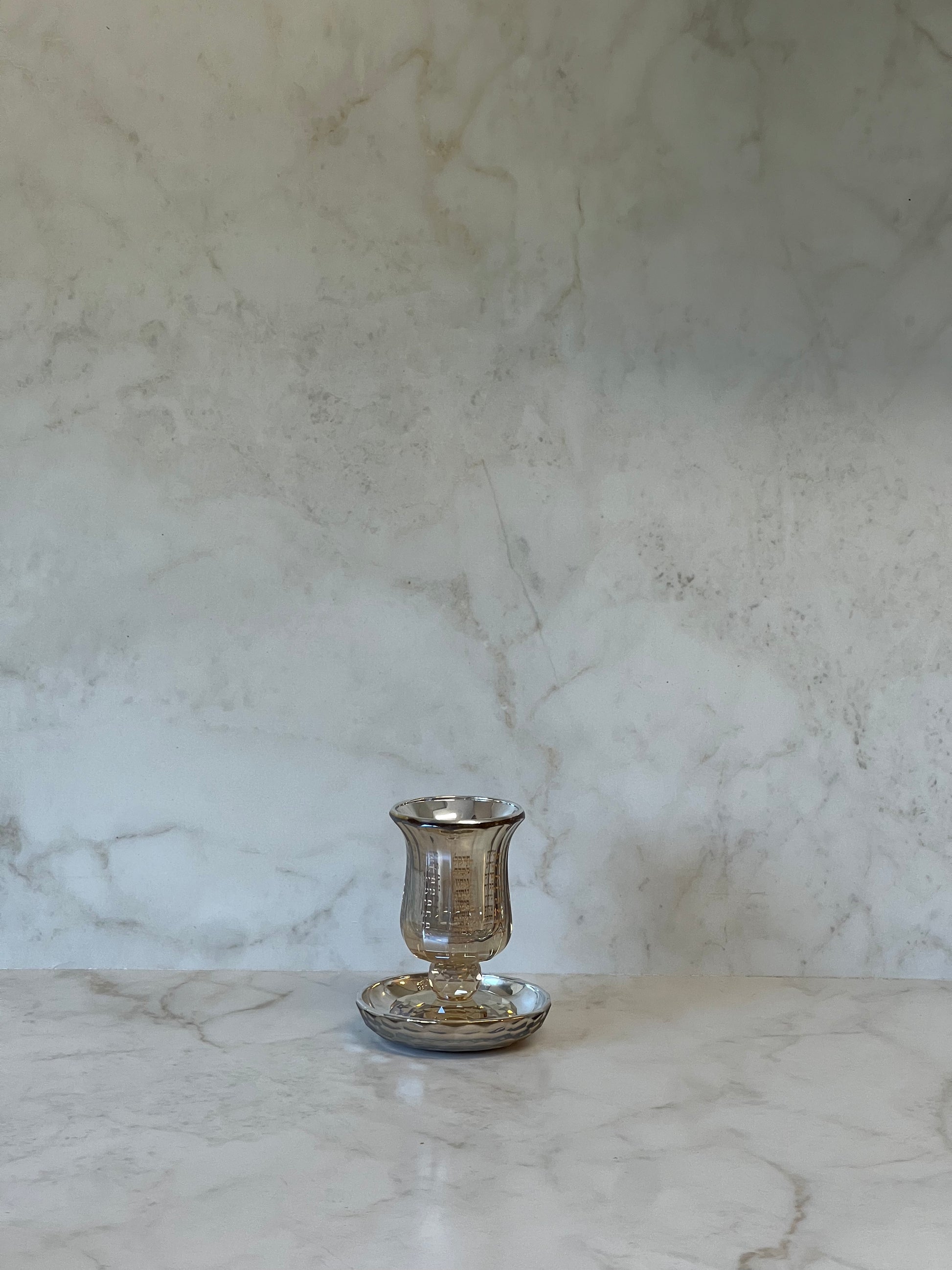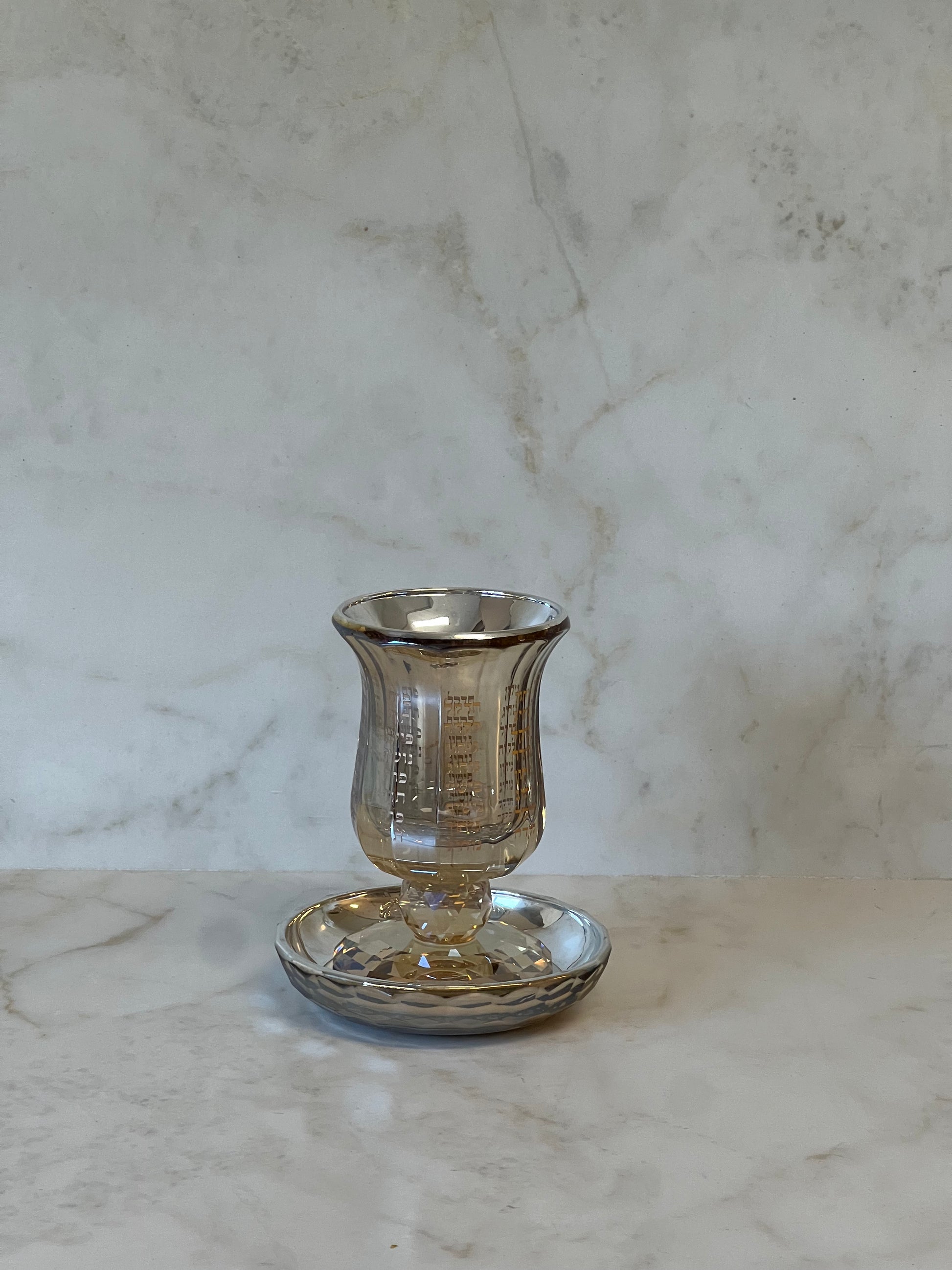 גביע קריסטל  נמוך עם צלחת תואמת משולב זהב, חריטות עדינות