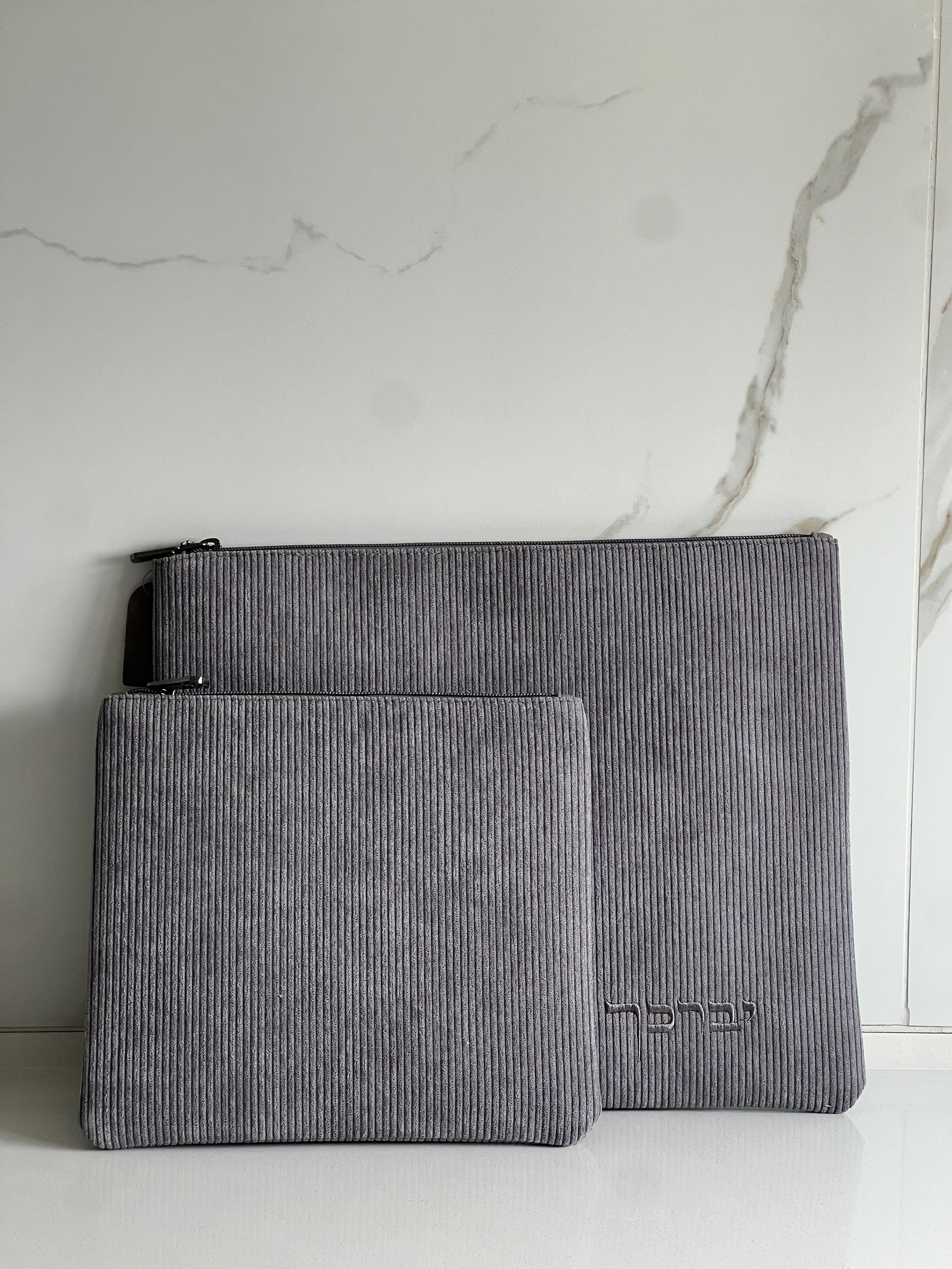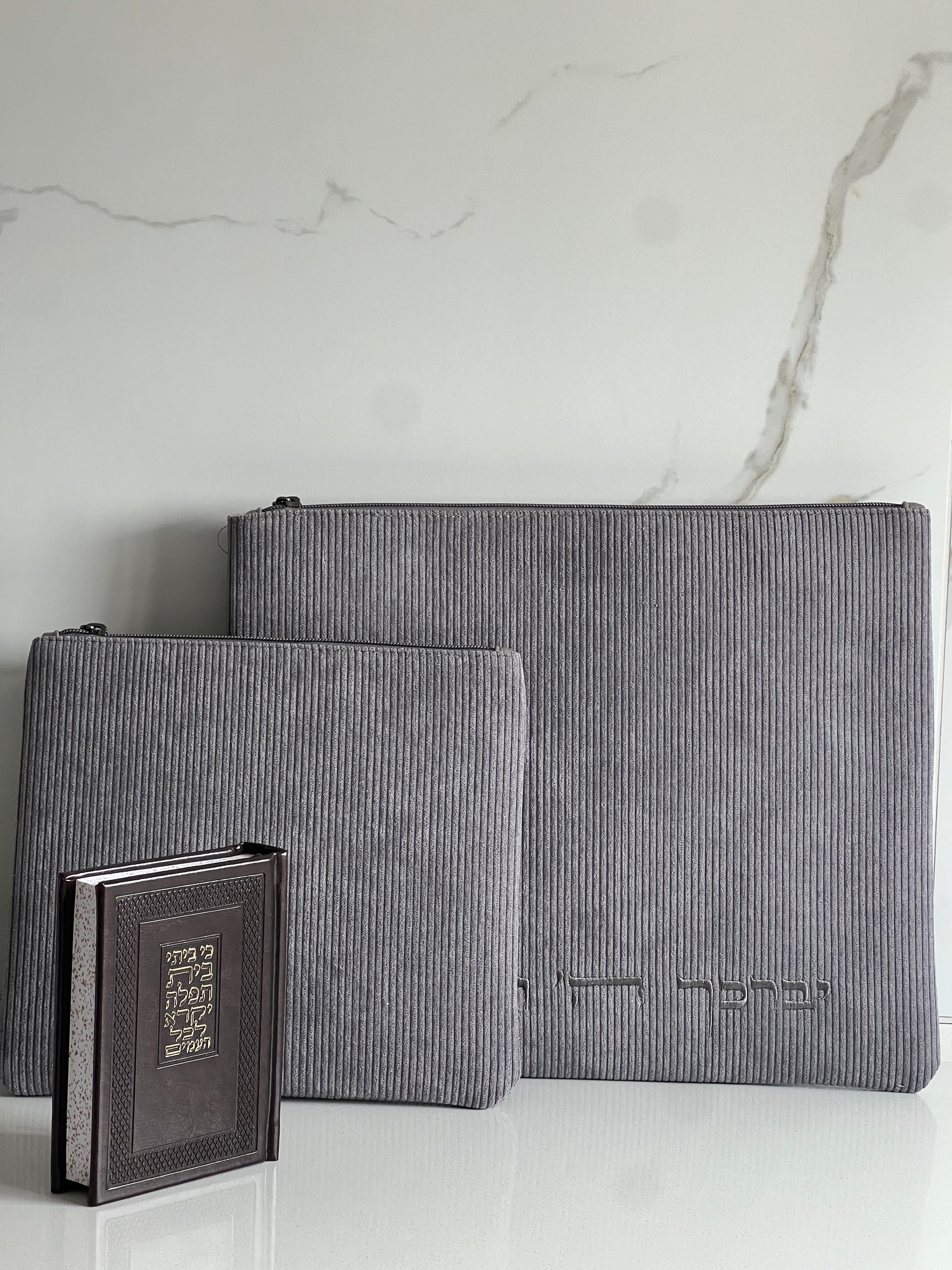 סט כיסוי טלית ותפילין מבד קורדרוי מדויק! בצבע אפור