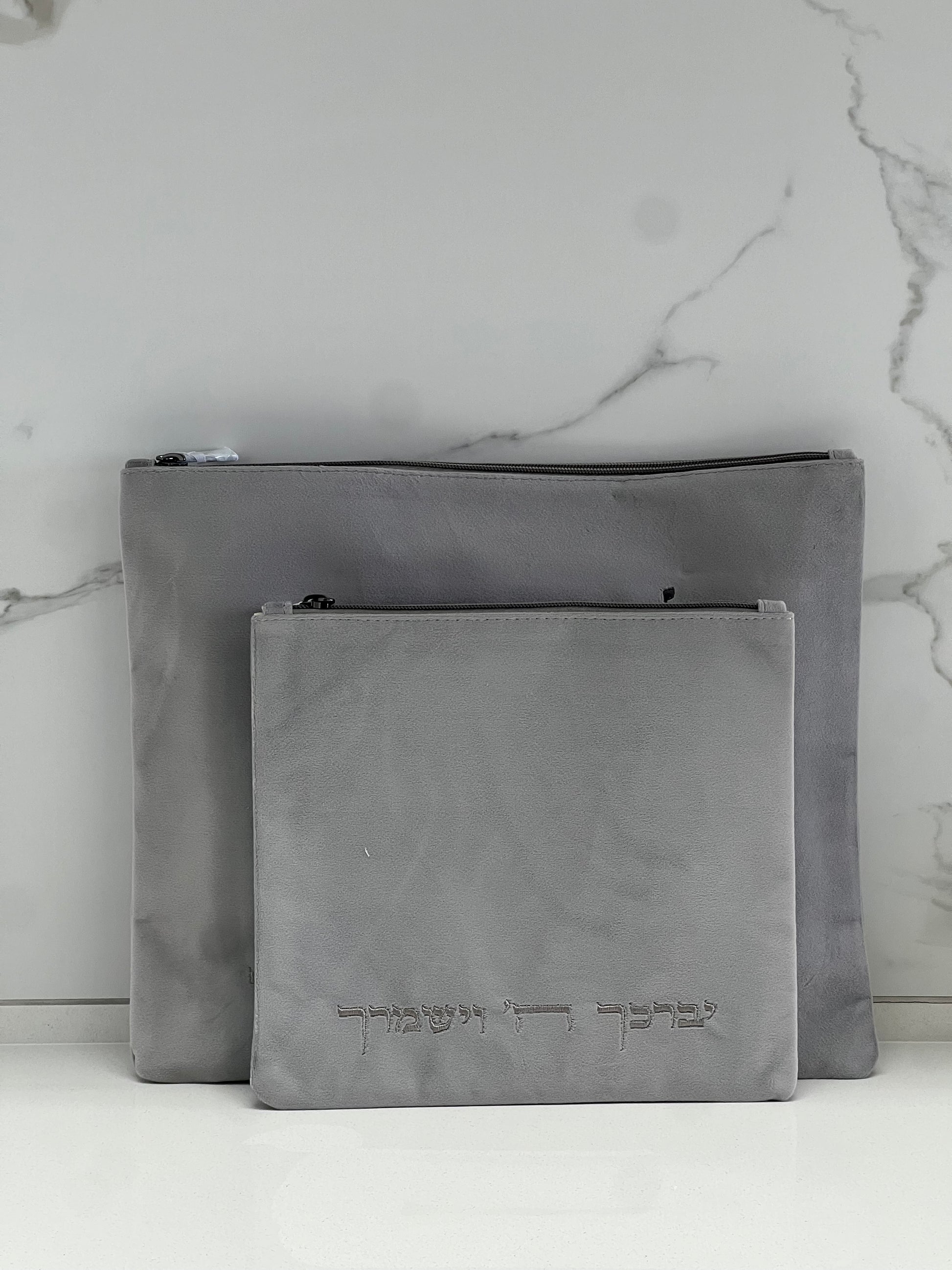 סט כיסוי טלית ותפילין קטיפה מדויק! בצבע אפור בהיר