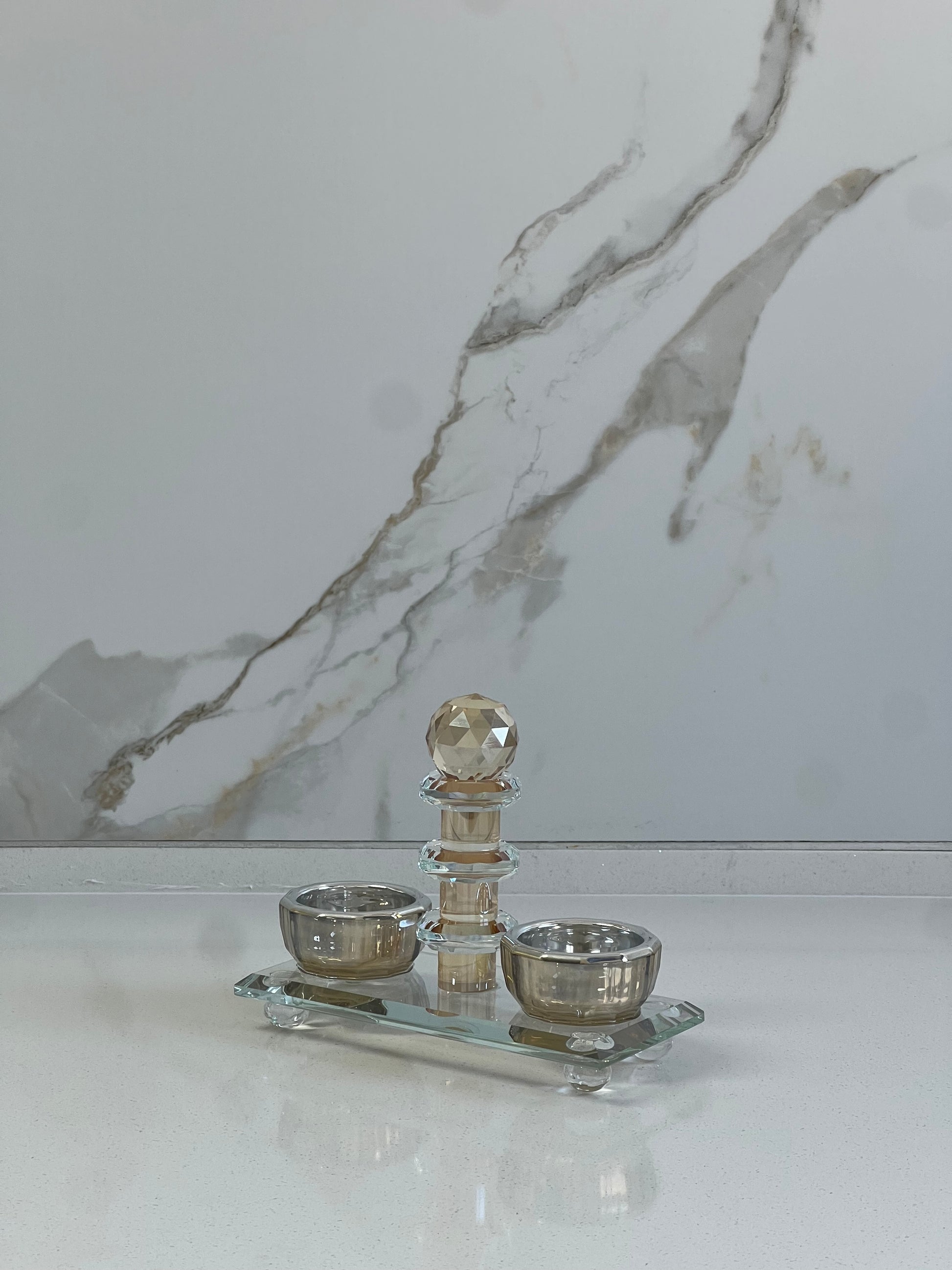 מלחיית קריסטל מהודרת בגוון זהב עם בסיס 13 ס״מ
