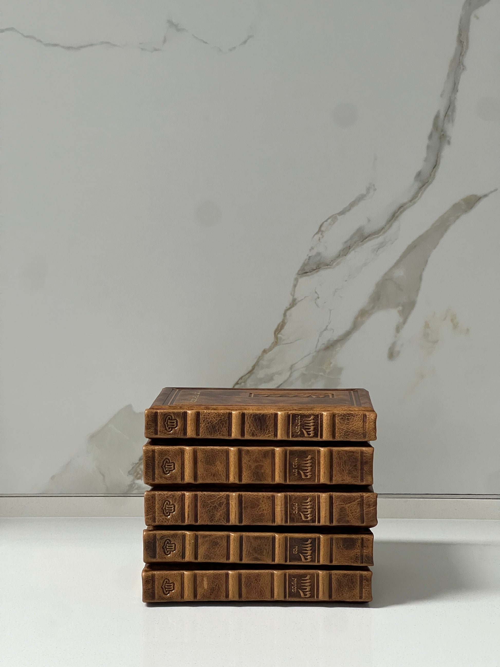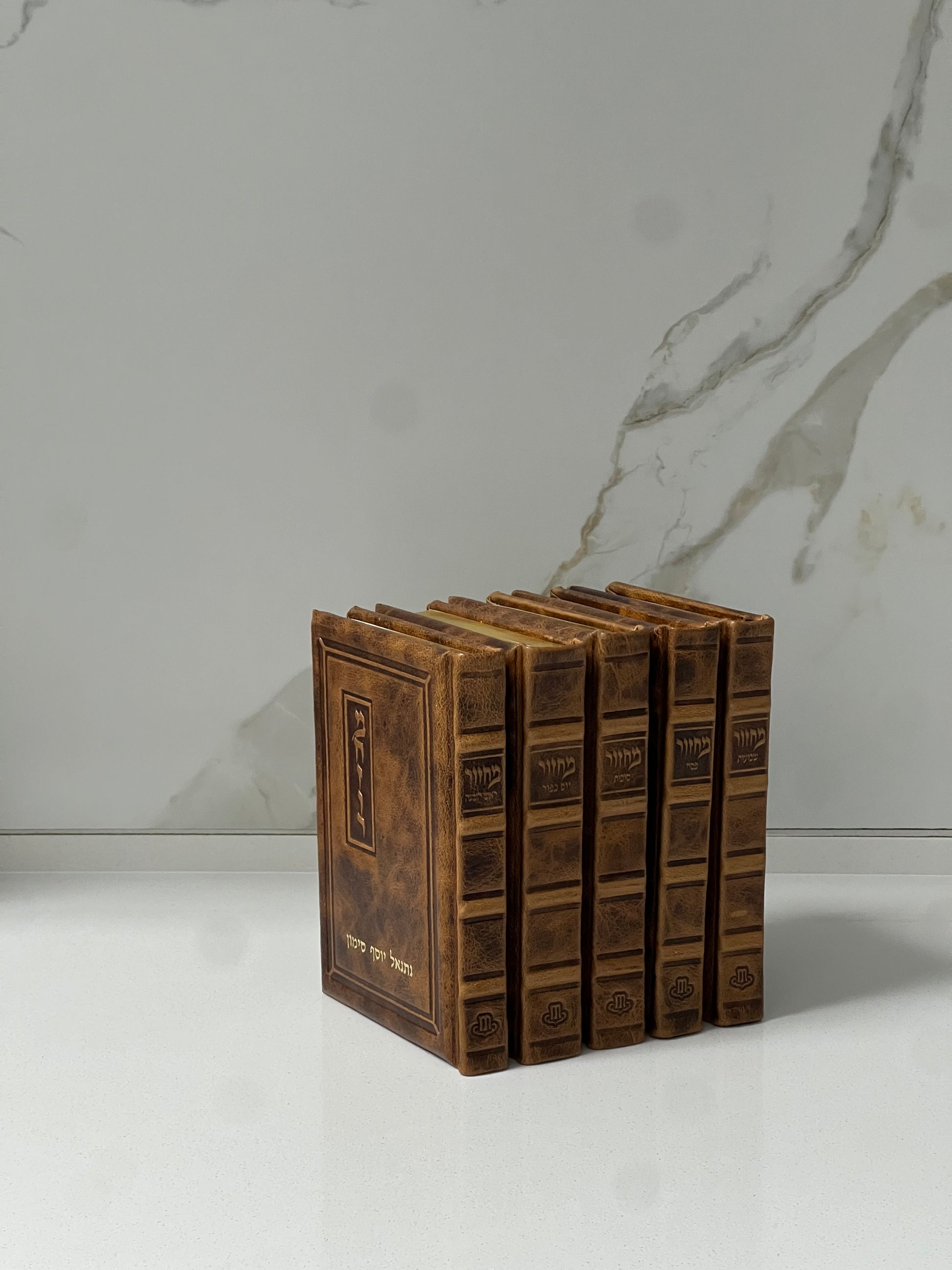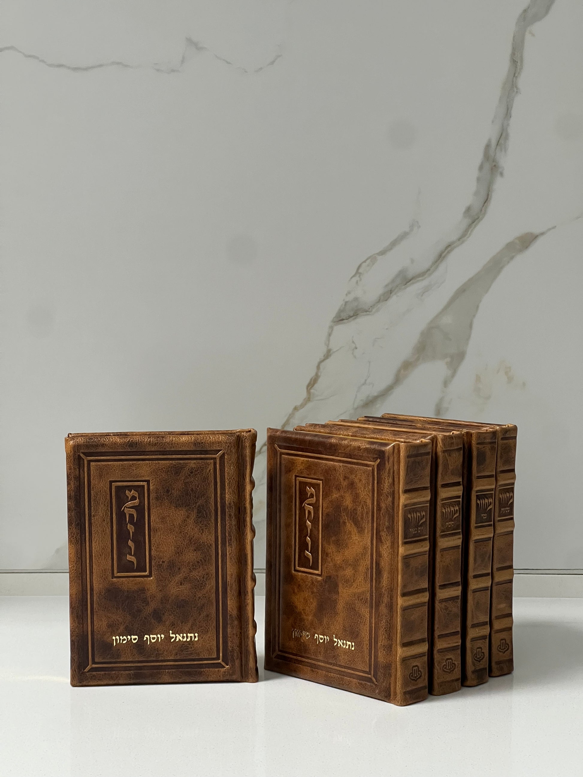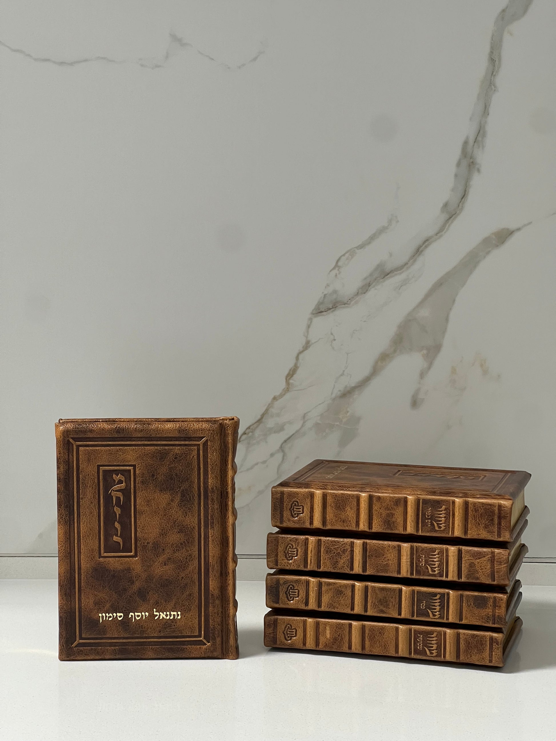 כריכה מעור אמיתי מובחר ומשובח בצבע חום עם טקסטורה